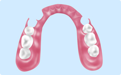 部分入れ歯を固定するためのバネ(クラスプ)に、白い素材を使用した入れ歯です。歯に近い色なので、金属製のバネに比べると目立ちません。